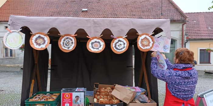 Koláč pro hospic - do této akce se zapojily děti ze třídy Sluníček a Berušek. Svými výrobky vyzdobily stánek na náměstí v Kunštátě.