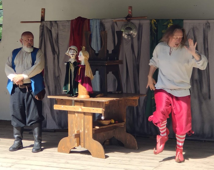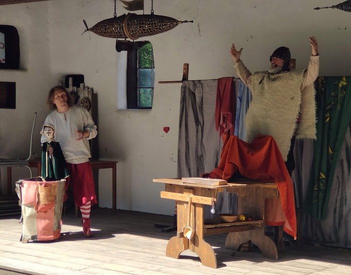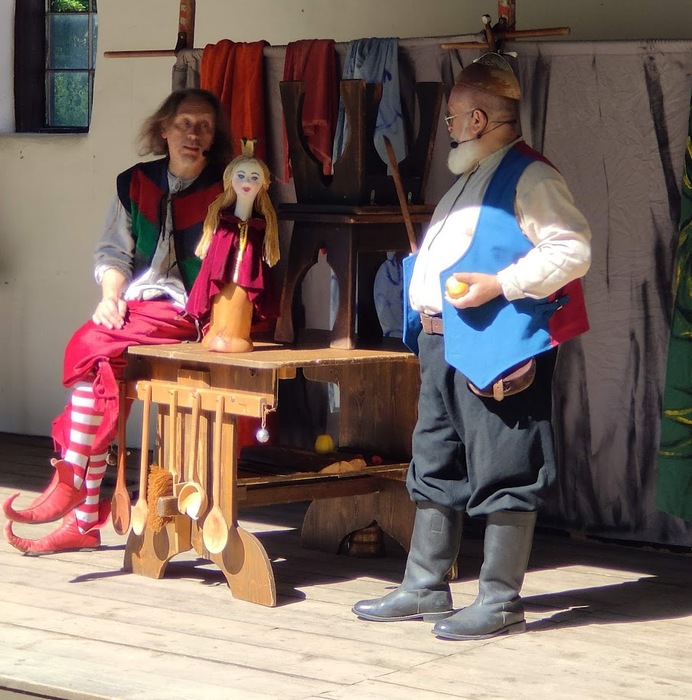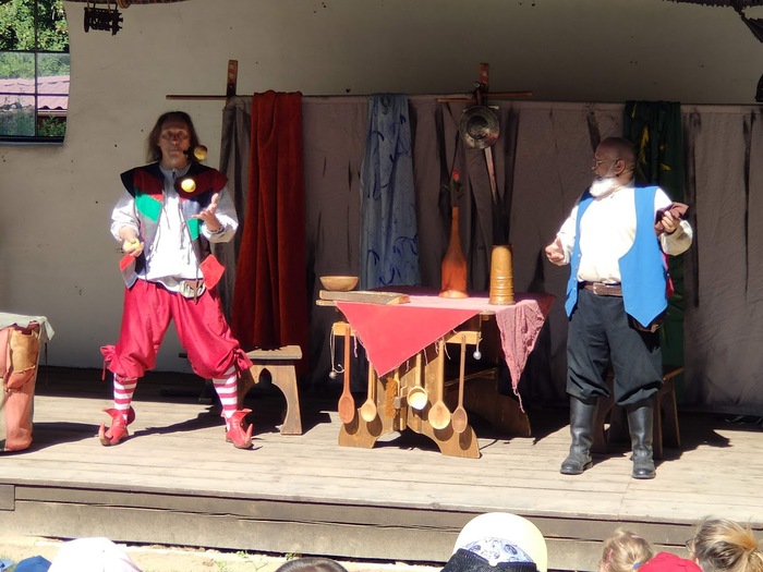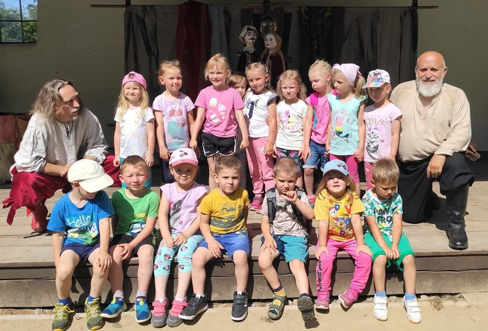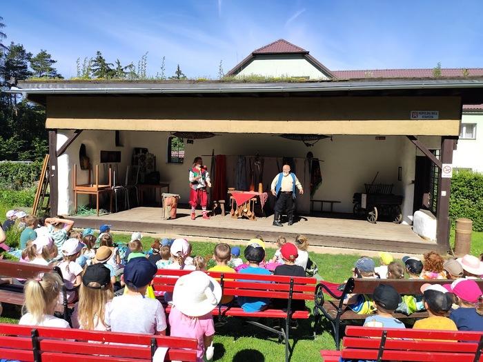 V pondělí 17. června jsme se se všemi dětmi vydali pěšky po cyklostezce do Rudky, kde pro nás bylo v areálu smyslové zahrady připraveno divadelní představení pod širým nebem v podání dvou kejklířů a komediantů. Zhlédli jsme pohádku o princi Nebojsovi, který se ničeho nebál a vysvobodil princeznu Krasavu. Všem se představení velmi líbilo.