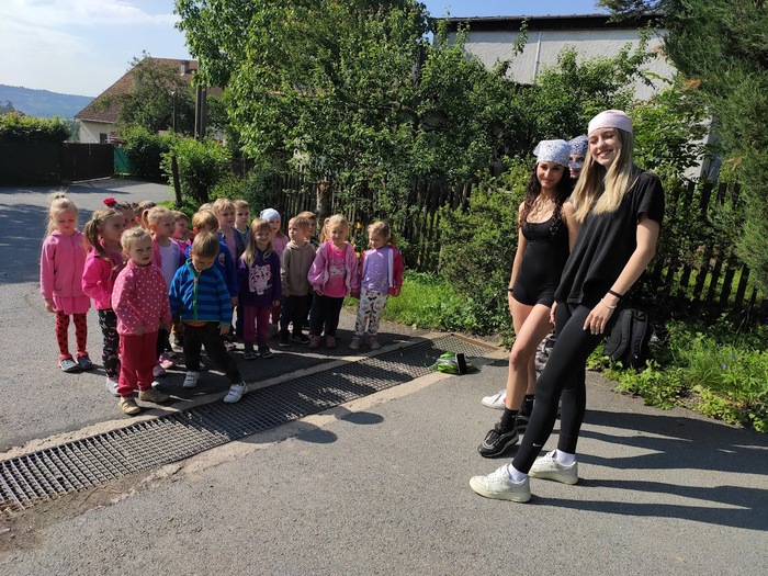 Deváté ročníky si pro děti ze školky připravily tradiční procházku lesem. Po cestě děti plnily různé pohybové i vědomostní úkoly. Společné dopoledne v lese si všichni užili.