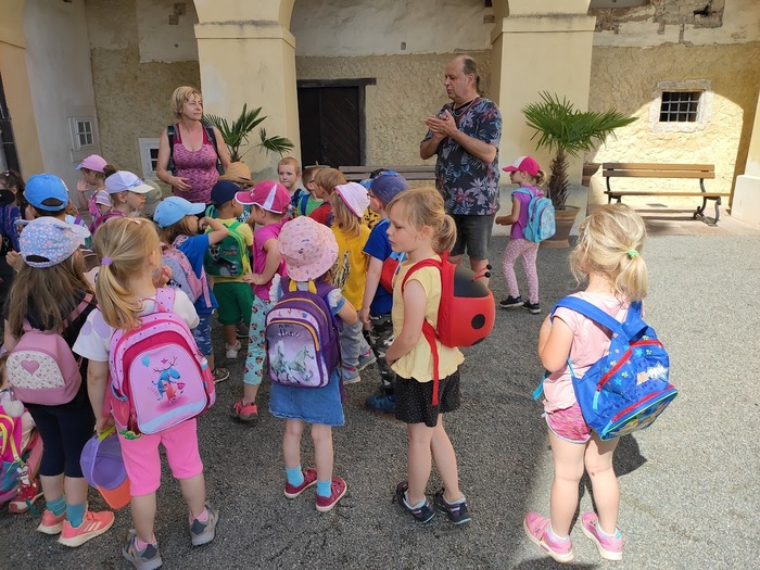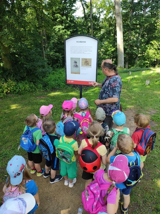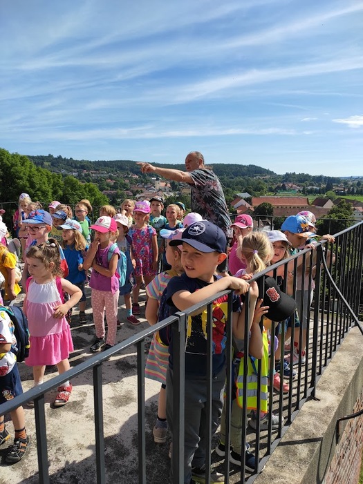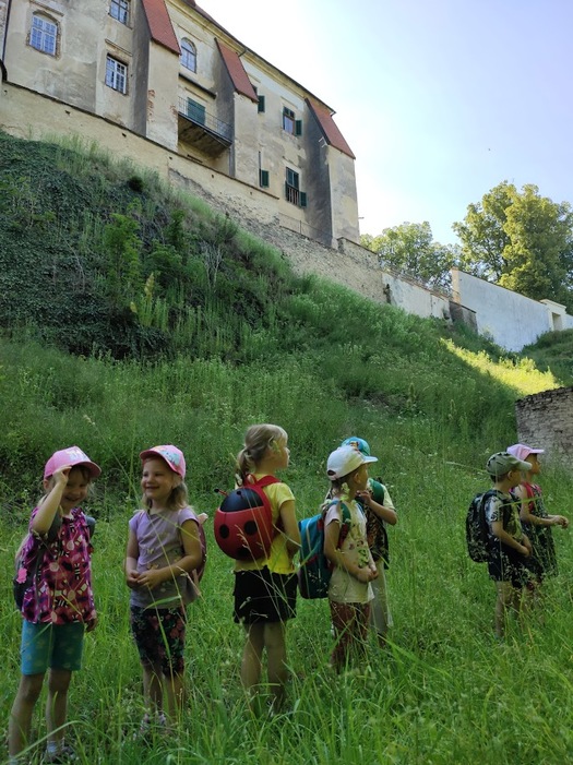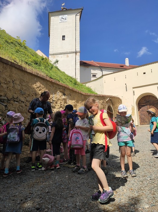S dětmi jsme se vydali na dopolední pěší výlet na kunštátský zámek. S panem kastelánem Bc. Radimem Štěpánem jsme si prohlédli okolí zámku a seznámili se s jeho historií – zámecká zahrada, vyhlídka, obora, psí hřbitov, střelnice.